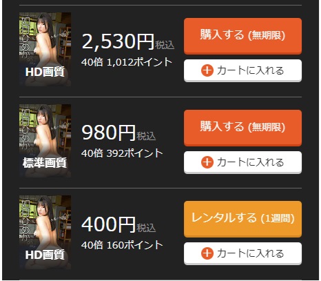 気になるお値段は以下です。左がSOKMIL、右がDUGA。DMMよりは求めやすいですね。もちろん、いずれDMMもこの価格帯になるはずですが、今のところは前述のとおり。